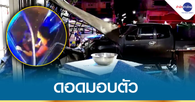 คนขับกระบะพุ่งชนร้านก๋วยเตี๋ยว เจ็บ 17 คน ดอดมอบตัว