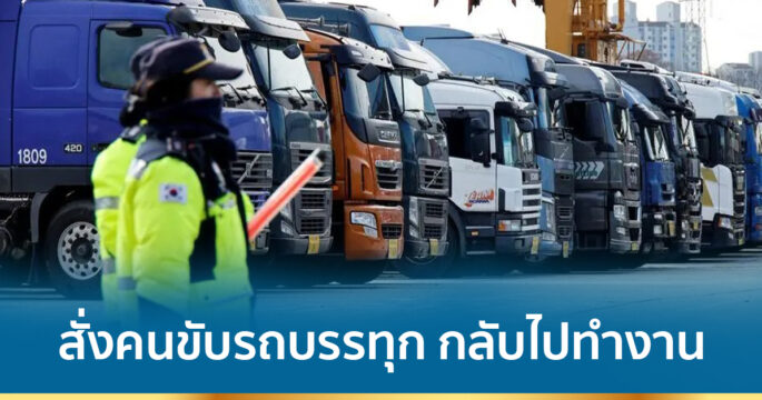 รัฐบาลเกาหลีใต้ มีคำสั่งให้คนขับรถบรรทุกหลายพันคนที่ผละงานประท้วง กลับเข้าทำงาน เผยการประท้วงสร้างความเสียหายให้เศรษฐกิจที่กำลังอ่อนแอ