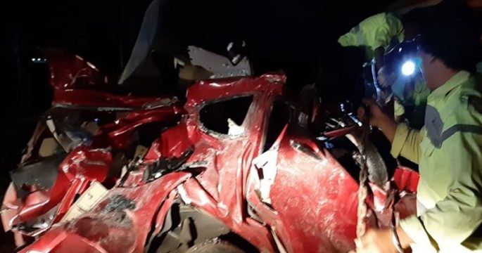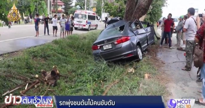 รถเก๋งพุ่งชนต้นไม้ คนขับดับ