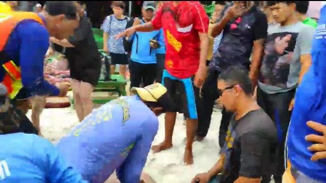 กู้ภัยระยองเร่งปั๊มชีพจรช่วยนักท่องเที่ยวชายชาวจีน วัย 32 ปี จมน้ำหมดสติหาดทรายแก้ว เกาะเสม็ด คาดเป็นตะคริวถูกคลื่นซัดออกชายฝั่ง ล่าสุดยังน่าห่วง ส่วนลูกชาย 12 ปี ช่วยรอด