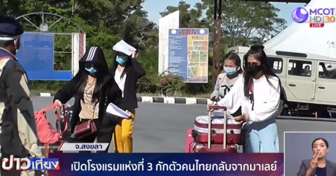 จ.สงขลา เปิดโรงแรมแห่งที่ 3 เพื่อใช้เป็นสถานที่กักตัวคนไทยกลับจากมาเลเซีย ขณะนี้มีคนไทยเดินทางเข้ามาแล้วกว่า 1,000 คน แต่ยังไม่พบใครติดเชื้อโควิด-19