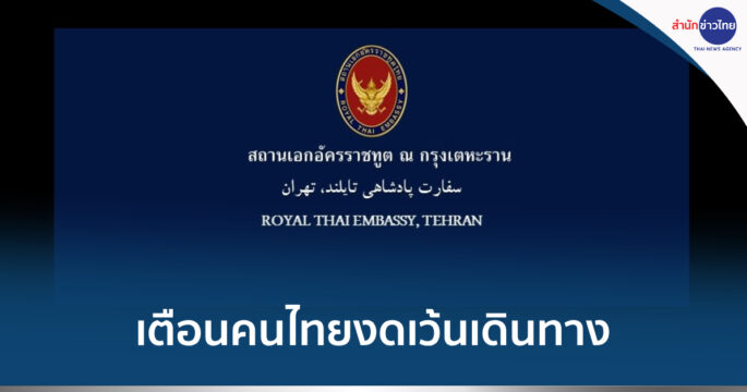เตือนคนไทยให้พิจารณางดเว้นการเดินทางไปยังพื้นที่อิสราเอลและอิหร่าน รวมถึงเฝ้าระวังสถานการณ์ ติดตามข่าวสารของทางการท้องถิ่นและจากสถานเอกอัครราชทูตไทยทุกแห่ง โดยเฉพาะสถานเอกอัครราชทูต ณ กรุงเทลอาวีฟ และสถานเอกอัครราชทูต ณ กรุงเตหะราน