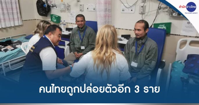 ก.ต่างประเทศ รายงานมีคนไทยชุดที่ 3 ได้รับการปล่อยตัวอีก 3 คน ทั้งหมดอยู่โรงพยาบาลที่ฝ่ายอิสราเอลจัดไว้ คาดยังมีคนไทยถูกควบคุมตัวอีก 15 ราย