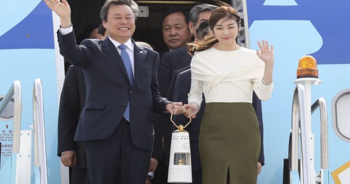 คบเพลิงโอลิมปิกฤดูหนาวได้รับการส่งต่อมาถึงเจ้าภาพเกาหลีใต้แล้วในวันนี้ ล่วงหน้า 100 วันก่อนมีพิธีเปิดการแข่งขันกีฬาโอลิมปิกฤดูหนาวพย็องชาง 2018