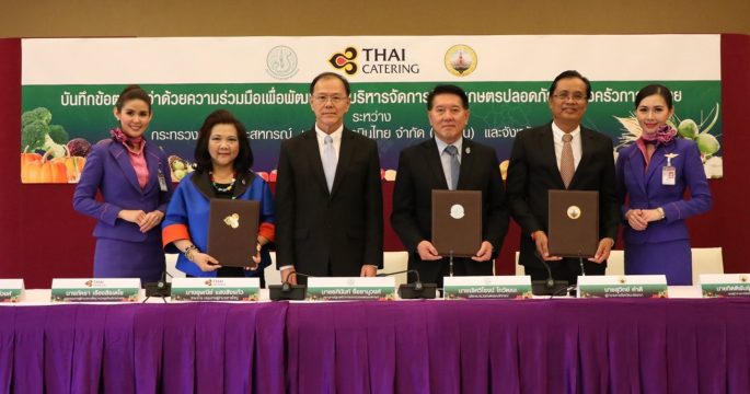 การบินไทย กระทรวงเกษตรและสหกรณ์ และจังหวัดฉะเชิงเทรา ร่วมลงนามบันทึกข้อตกลงความร่วมมือ เพื่อพัฒนาการบริหารจัดการสินค้าเกษตรปลอดภัยสูง เพื่อครัวการบินไทย