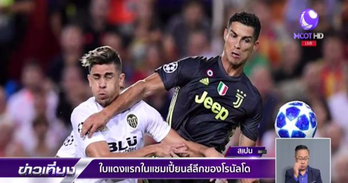 คริสเตียโน โรนัลโด ซูเปอร์สตาร์ของยูเวนตุส ถูกไล่ออกในถ้วยแชมเปียนส์ ลีก เป็นครั้้งแรก มีโอกาสโดนแบนในเกมที่จะออกไปเยือนแมนเชสเตอร์ ยูไนเต็ด ด้วย