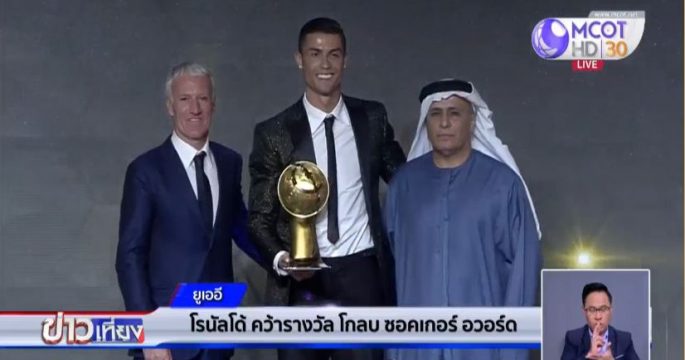 คริสเตียโน โรนัลโด ดาวยิงทีมชาติโปรตุเกส คว้ารางวัลนักเตะยอดเยี่ยมแห่งปี 2018 และรางวัลโกลบ ซอคเกอร์ 433 แฟน อวอร์ด ที่ยูเออี