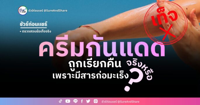 ชัวร์ก่อนแชร์: ครีมกันแดดถูกเรียกคืนเพราะมีสารก่อมะเร็ง จริงหรือ?