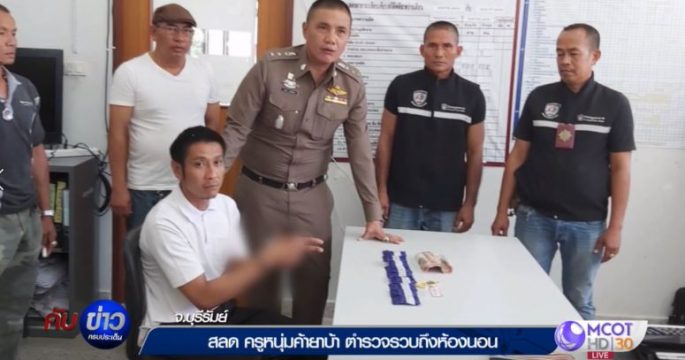 ครูหนุ่มค้ายาบ้า ตำรวจตามรวบถึงห้องนอน ค้นบ้านพบยาบ้า 1,915 เม็ด เผยครูรายนี้ ลักลอบขายยาบ้าให้นักเรียน นักศึกษา วัยรุ่นในเขต อ.พุทไธสง จ.บุรีรัมย์ กับอำเภอใกล้เคียง มานานแล้ว แต่ไม่สามารถจับกุมได้