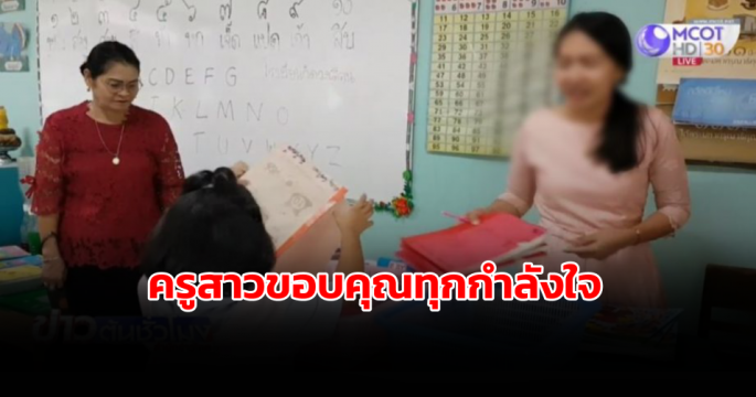 ครูสาวโรงเรียนใน จ.ชัยนาท ที่ออกมาแฉประเด็นอาหารกลางวันโรงเรียน จนถูกมือมืดปาถุงเลือดหมูใส่ประตูหน้าห้องเรียน เดินทางเข้าทำหน้าที่สอนหนังสือตามปกติ หลังมีคำสั่งให้กลับมาปฏิบัติหน้าที่ตามเดิม พร้อมกล่าวขอบคุณผู้บริหาร สังคม และผู้ปกครองที่ให้กำลังใจ