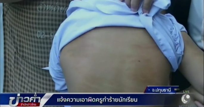 เหตุนักเรียนชายชั้น ป.1 ที่ จ.ปทุมธานี ถูกครูสาวตีเกือบ 100 ครั้ง วันนี้ทนายความและแม่เข้าแจ้งความดำเนินคดีกับครูแล้ว ซึ่งตำรวจยังไม่แจ้งข้อหา โดยจะออกหมายเรียกมาสอบสวนอีกครั้ง