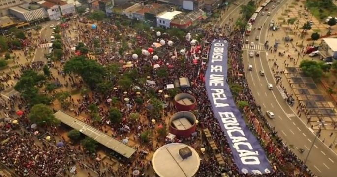 นักเรียน นักศึกษาและครูนับหมื่นคนร่วมชุมนุมตามท้องถนนทั่วบราซิล เพื่อประท้วงรัฐบาลที่มีแผนตัดงบการศึกษา