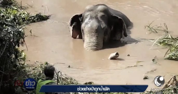 ค่ำแล้วยังช่วยขึ้นมาไม่ได้ ช่วยช้างป่าสีดอเพศผู้ ถูกน้ำหลากพัดจมคลองชมพู อ.เนินมะปราง จ.พิษณุโลก เจ้าหน้าที่ระดมกำลังช่วย