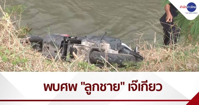 พบศพลูกชายเจ๊เกียว มหาเศรษฐีโคราช จมคลองชลประทานกลางเมืองโคราช ใกล้กันพบรถจักรยานยนต์คว่ำอยู่