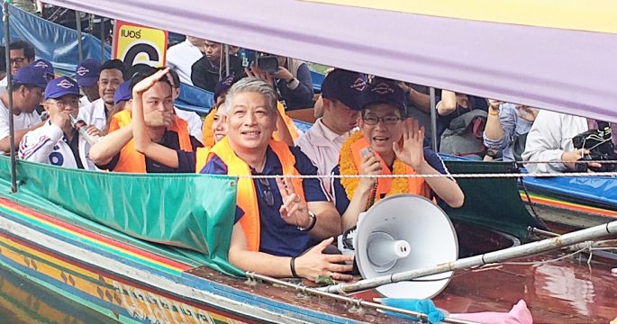 “ชัชชาติ” ควง “วิโรจน์” ลงเรือลำเดียวกัน สำรวจคลองลาดพร้าว พร้อม ส.ก. จากพรรคเพื่อไทยและก้าวไกล ร่วมเดินหน้านโยบายป้องกันน้ำท่วม