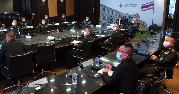รมช.กห.ประชุมนขต. กห.-ตร. กำชับหนุนสธ.ตั้งรพ.บุษราคัมที่อิมแพคเตรียมรองรับผู้ติดเชื้อโควิด จำกัดการแพร่ระบาดในชมุชนแออัด ช่วยประชาชนในพื้นที่เสี่ยง ปฏิบัติหน้าที่ด้วยความระมัดระวัง ไม่ประมาท
