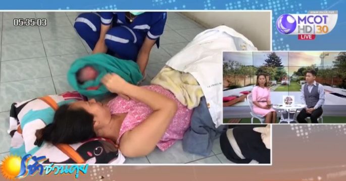 แม่วัย 34 ปี เกิดเจ็บท้องรุนแรงก่อนกำหนดคลอด จึงบอกสามีให้พาส่งโรงพยาบาล แต่ไปยังไม่พ้นอพาร์ตเมนต์ เด็กก็คลอดออกมา เป็นเพศหญิง แข็งแรงปลอดภัยทั้งแม่และลูก