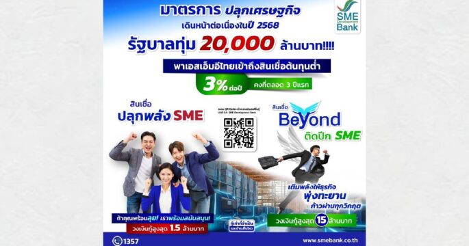 คลังหนุน เอสเอ็มอี ดีแบงก์ ออกสินเชื่อปลุกพลัง SME-สินเชื่อ Beyond ติดปีก SME คิดดอกเบี้ยร้อยละ 3 ช่วง 3 ปีแรก