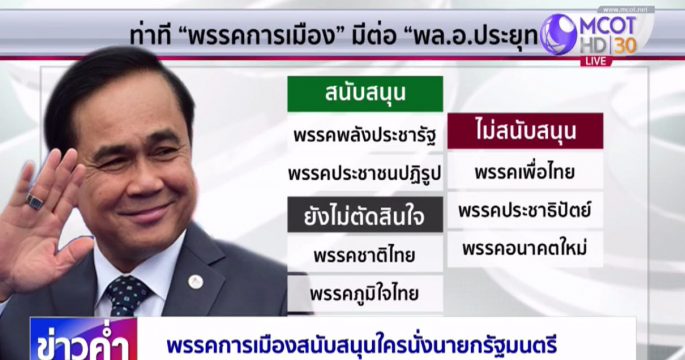 พรรคการเมืองสนับสนุนใครนั่งนายกรัฐมนตรี