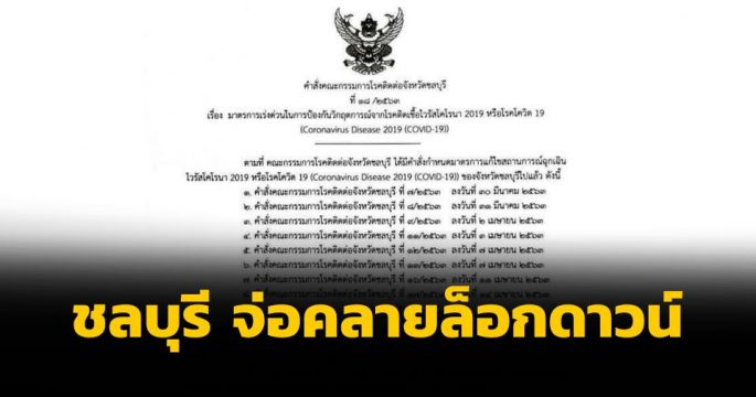 ผู้ว่าฯชลบุรี ออกคำสั่งเตรียมคลายล็อกดาวน์ 1 พ.ค.นี้ หลังการแพร่ระบาดโควิด-19 เริ่มคลี่คลาย