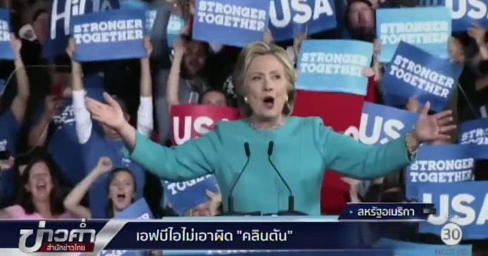 เหลือเวลา อีก 2 วัน จะเลือกตั้งประธานาธิบดีสหรัฐ นางฮิลลารี คลินตัน ได้รับกำลังใจกลับคืนมาอีกครั้ง เมื่อจู่ๆ FBI ก็ออกมาประกาศว่าเธอไม่มีความผิด