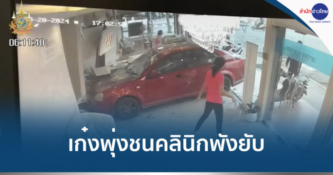 สาวขับเก๋งพุ่งชนคลินิกพังยับ อัดร่างพนักงานบาดเจ็บ 1 ราย หมอเจ้าของคลินิกเผยคู่กรณียังไม่ติดต่อชดใช้ค่าเสียหายกว่าครึ่งล้าน