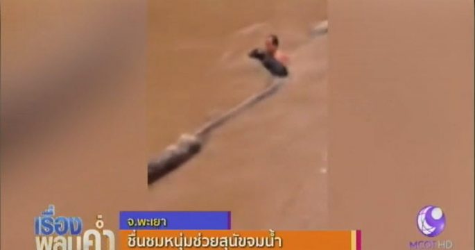 โลกโซเชียลแห่ชื่นชมหนุ่มพนักงานขับรถยนต์เทศบาลตำบลเชียงม่วน จ.พะเยา ฝ่าน้ำหลากท่วมและไหลเชี่ยว ลงไปช่วยสุนัขที่กำลังจะจมน้ำตายไปต่อหน้า