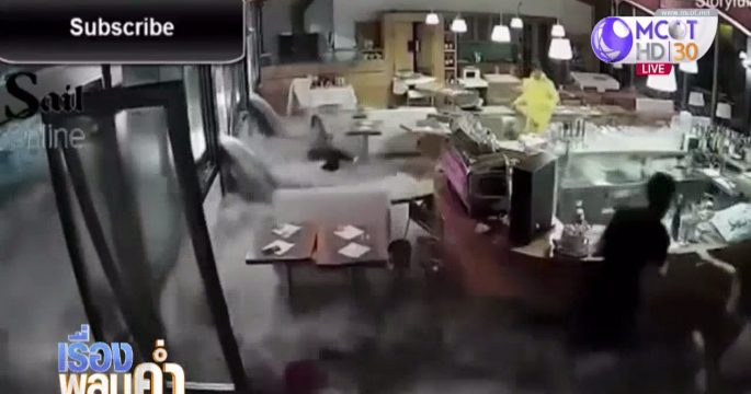 คลื่นยักษ์จากพายุ ซัดเฃ้าชายฝั่งเมืองอาเรนซาโนของอิตาลี ร้านอาหารอยู่ติดทะเลโดนคลื่นซัดขึ้นฝั่งทำลายประตูแตกเสียหายน้ำทะลักเข้าท่วม