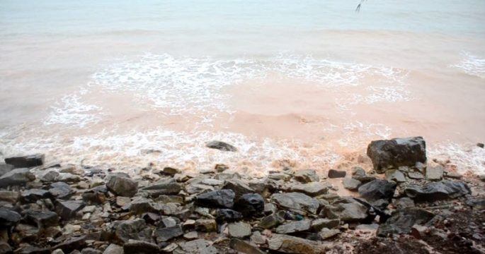 เรือบาร์จบรรทุกสินค้าเกยชายหาดบ้านราไวย์ คนงานประจำเรือเผยคลื่นลมแรงมาก จนซัดสายสมอขาด
