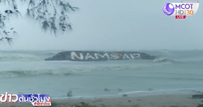บริเวณชายหาดปลายทอน ในตำบลทุ่งปรังอำเภอสิชล 1 ใน 4 ตำบลติดริมชายฝั่ง ที่คาดว่าจะได้รับผลกระทบรุนแรงจากพายุปลาบึก ขณะนี้คลื่นลมบริเวณชายหาดปลายทอนมีความสูงราว 4-5 เมตร ทางอำเภออพยพประชาชนไปยังศูนย์อพยพต่างๆ แล้ว