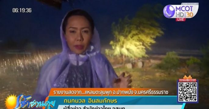 ที่แหลมตะลุมพุก อ.ปากพนัง จ.นครศรีธรรมราช ตลอดทั้งคืนที่ผ่านมามีฝนตกลงมาอย่างต่อเนื่อง คลื่นลมยังทวีความรุนแรง สูงกว่า 2-3 เมตร