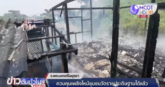 คืบหน้าเหตุเพลิงไหม้ในชุมชน วัดราชประดิษฐาน อยู่กลางเกาะเมืองพระนครศรีอยุธยา มีบ้านเรือนประชาชนปลูกติดกันมากกว่า 50 หลัง ล่าสุดเจ้าหน้าที่ควบคุมเพลิงได้แล้ว มีบ้านเรือนเสียหายหลายหลัง