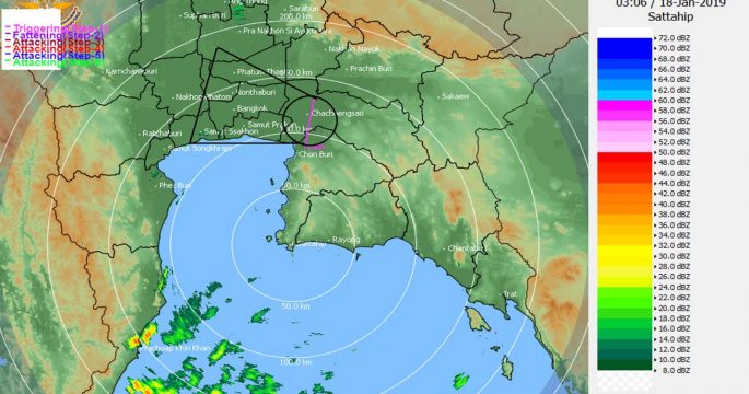 กรมฝนหลวงฯ ขึ้นบินสร้างแกนเมฆจากชลบุรีถึงฉะเชิงเทรา ระบุความชื้นสัมพัทธ์สูงกว่าทุกวัน แต่ค่าการยกตัวของเมฆไม่ดี