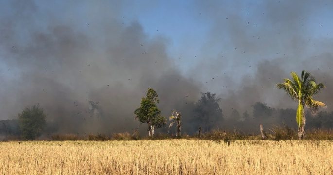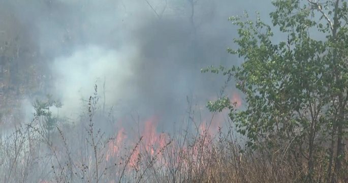 อุทัยธานี 9 เม.ย.- ทหาร-ป่าไม้ระดมชาวบ้านอุทัยธานีเร่งดับไฟไหม้ป่าริมถนนสายทัพทันนานกว่าชั่วโมง เริ่มลามเข้าเขตวนอุทยานเขาหลวง พร้อมจัดชุดเฝ้าระวังกันปะทุซ้ำ สภาพถนนสายทัพทัน-โกรกพระ บ้านหินกอง หมู่ 5 ต.โคกหม้อ อ.ทัพทัน จ.อุทัยธานี เต็มไปด้วยควันไฟจากไฟไหม้ป่าหญ้าข้างทาง ทำให้ผู้สัญจรต้องเพิ่มความระมัดระวังและลดความเร็ว เนื่องจากมองเห็นเส้นทางไม่ชัดเจน ขณะที่ไฟได้ลุกลามอย่างรวดเร็วเข้าไปในเชิงเขาเขตวนอุทยานเขาหลวง ท่ามกลางกระแสลมพัดแรง ทำให้ไฟเริ่มลามขึ้นบนเขา ด้านเจ้าหน้าที่ทหารหมวดรักษาความสงบเรียบร้อยประจำพื้นที่อำเภอทัพทัน สังกัดกองพันทหารราบที่ 1 กรมทหารราบที่ เจ้าหน้าที่ดับไฟป่าหน่วยป้องกันรักษาที่.นว.3 (วังร่มเกล้า) เจ้าหน้าที่ป่าไม้ ผู้ใหญ่บ้าน และชาวบ้านในพื้นที่แบ่งกำลังชุดแรกเข้าดับไฟบริเวณข้างทาง เพื่อไม่ให้กระทบต่อการสัญจร และแบ่งกำลังสกัดไฟให้อยู่ในวงจำกัดไม่ให้ลามสู่บนเขาสูงชัน ไม่เช่นนั้นจะยากต่อการดับไฟ ซึ่งชุดเจ้าหน้าที่ใช้เวลากว่า 1 ชั่วโมง จึงควบคุมสถานการณ์ไว้ได้ คาดว่าพื้นที่เสียหายไปประมาณ 10 ไร่ และยังต้องจัดเวรยามเฝ้าระวังต่อไปอีกระยะ เพื่อป้องกันไฟปะทุซ้ำ.-สำนักข่าวไทย