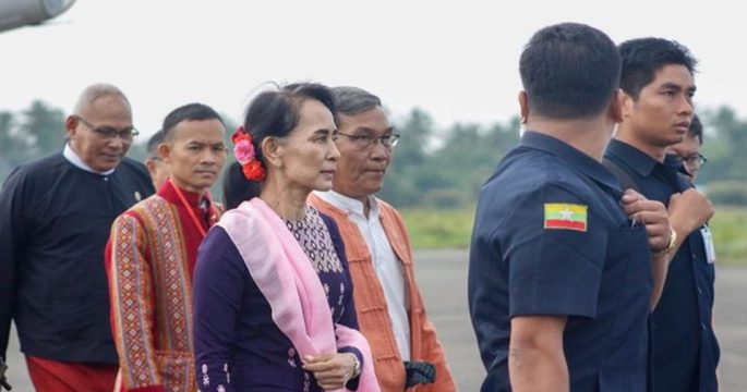 โฆษกรัฐบาลเมียนมาเปิดเผยว่า นางออง ซาน ซู จี ที่ปรึกษาแห่งรัฐเมียนมาเดินทางถึงรัฐยะไข่ทางตอนเหนือของประเทศที่เกิดวิกฤตความรุนแรงเป็นครั้งแรกในวันนี้