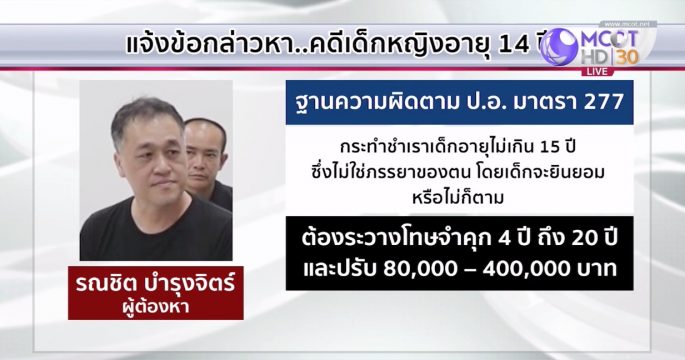 คดีที่เกิดขึ้นกับเด็กหญิงอายุ 14 ปี ตำรวจแจ้งข้อหากับชายวัย 52 ปี รวมทั้งสิ้น 3 ข้อหา ไปดูรายละเอียดของความผิดทั้ง 3 ข้อหากัน