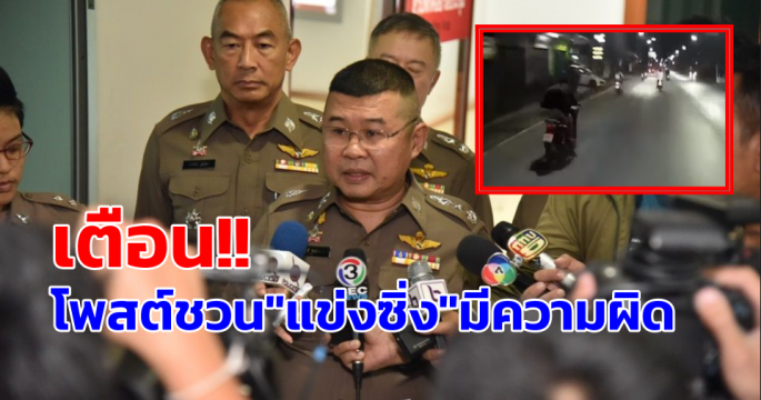 เตือนใครโพสต์คลิปชวนไปแข่งรถซิ่งถูกดำเนินคดีฐานเป็นผู้จัด สนับสนุน หรือส่งเสริมให้มีการแข่งรถในทาง ส่วนใครโพสต์จะไปด้วยเข้าข่ายเป็นผู้สนับสนุน โทษจำทั้งปรับ