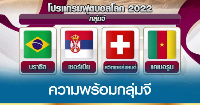 “9 ทันบอลโลก” วันนี้ ติดตามความพร้อมของกลุ่มจี ประกอบด้วย บราซิล เซอร์เบีย สวิตเซอร์แลนด์ และ แคเมอรูน ก่อนลุยศึกฟุตบอลโลก 2022