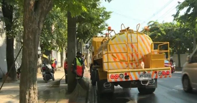 เช้าวันนี้ บรรยากาศด้านหน้าอาคารรัฐสภากลับเข้าสู่ภาวะปกติแล้ว เจ้าหน้าที่ กทม.เข้ามาล้างทำความสะอาดพื้นผิวการจราจร
