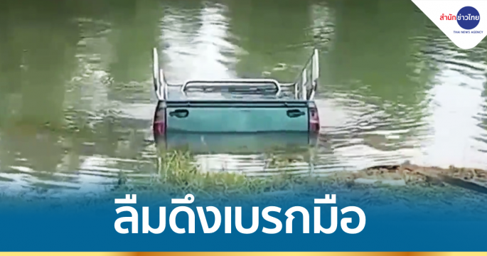ลืมดึงเบรกมือ! รถไหลลงบึงจมน้ำ