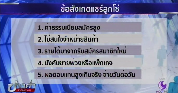 สคบ.เตรียมควบคุมธุรกิจขายตรงให้เข้มงวดขึ้น หลังจากมีเหตุฉ้อโกงประชาชนในลักษณะแชร์ลูกโช่ จนเกิดความเสียหาย อย่างคดีโชกุน หรือหมอลวงหมอลงทุนบริษัททัวร์ เพื่อให้ประชาชนเข้าใจและแยกธุรกิจถูกกับผิดออกจากกันได้