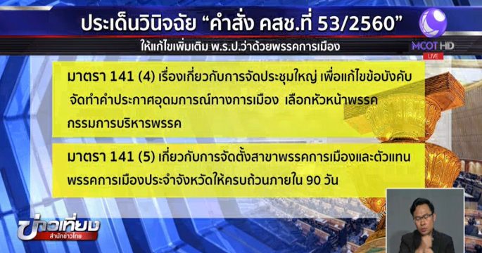 ศาลรัฐธรรมนูญ เตรียมวินิจฉัยว่า คำสั่ง คสช.ที่ 53/2560 ขัดต่อรัฐธรรมนูญหรือไม่