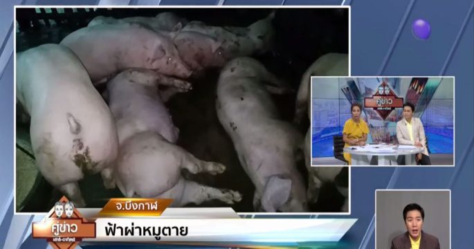 ฟ้าผ่าคอกหมูของชาวบ้าน อ.บึงโขงหลง จ.บึงกาฬ ได้รับความเสียหาย มีหมูตายเกือบ 10 ตัว