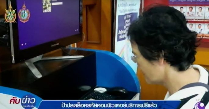 ป้าปลดล็อกรหัสคอมพิวเตอร์บริการฟรี ของ สภ.เมืองนนทบุรีแล้ว หลังวานนี้ใส่รหัสล็อกคอมพิวเตอร์ที่ให้บริการฟรี ทำให้คนอื่นใช้ไม่ได้ แจงไม่ได้เจตนา