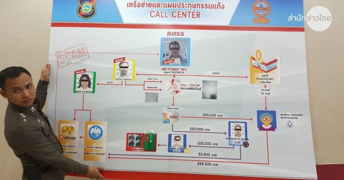 -เจ้าหน้าที่จับระดับรองหัวหน้าขบวนการคอลเซ็นเตอร์ สัญชาติจีน-ไต้หวัน พร้อมแถลงผลยับยั้งการถอนเงินเหยื่อที่หลงเชื่อออกจากบัญชีได้ 5 ราย