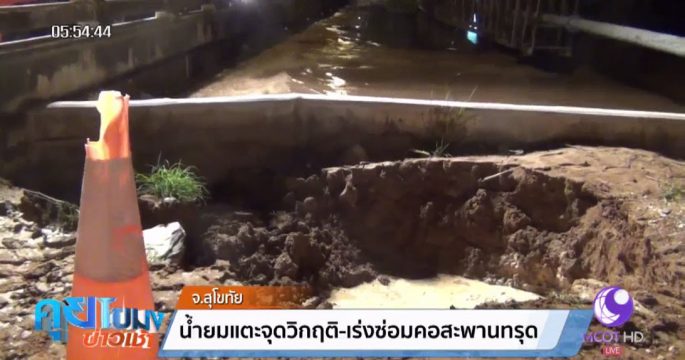ระดับน้ำในแม่น้ำยมแตะจุดวิกฤติ ขณะเดียวกันเกิดเหตุคอสะพานทรุดเป็นโพรงจากน้ำกัดเซาะ ผู้ว่าฯ สุโขทัย ลงพื้นที่ตรวจสอบสั่งการเร่งซ่อมแซมทันที