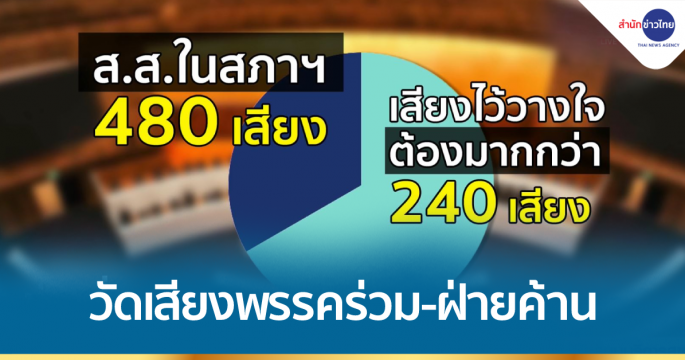 ณ เวลานี้ ในสภาฯ มีคะแนนเสียงทั้งหมด 480 คะแนน จากจำนวนจริง 482 คน เนื่องจากมี ส.ส.ภูมิใจไทย ป่วยโควิด 1 คน และ ส.ส.พลังประชารัฐ ต้องกักตัว 1 คน ทำให้วันพรุ่งนี้คะแนนเสียงของฝ่ายรัฐบาลจะหายไป 2 เสียง และหากจะผ่านไว้วางใจไปได้ ต้องได้มากกว่า 240 เสียง