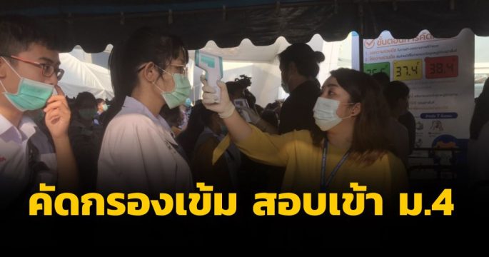 เจ้าหน้าที่เข้มคัดกรองโควิด-19 นักเรียนจากทั่วประเทศที่ทยอยเดินทางมาอาคารอิมแพ็ค ฟอรั่ม เมืองทองธานี เพื่อเตรียมตัวสอบคัดเลือกเรียนต่อ ม.4 ปีการศึกษา 63 โรงเรียนเตรียมอุดมศึกษา