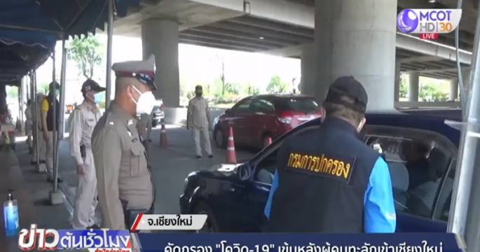 เจ้าหน้าที่ด่านคัดกรองโควิด-19 จ.เชียงใหม่ ตรวจเข้มรถยนต์ที่เดินทางมาจากต่างจังหวัด หลังมีปริมาณรถเข้าสู่จังหวัดเป็นจำนวนมาก