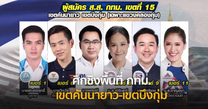 สนามเลือกตั้งในพื้นที่ กทม. ดุเดือดไม่แพ้ต่างจังหวัด วันนี้พาไปเจาะสนาม กทม. ฝั่งตะวันออก ในเขตเลือกตั้งที่ 15 เขตคันนายาว เขตบึงกุ่ม (เฉพาะแขวงคลองกุ่ม) พรรคเก่าหรือพรรคใหม่ใครจะปักธงในพื้นที่ ติดตามจากรายงาน